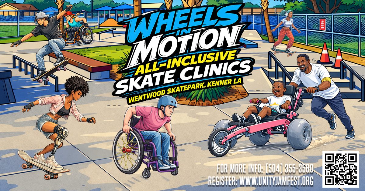 Unity Jam Fest is our premier 2026 community skate festival bringing together adaptive athletes, skateboarders, families, and supporters at Wentwood Skatepark. The event features live demonstrations, open skate sessions, community engagement, special guests, and inclusive competition elements. All wheels. All abilities. One park.
